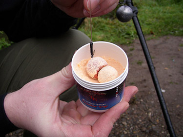 Zutaten: Boilies, Pop-Ups und Booster Powder Dip. |
