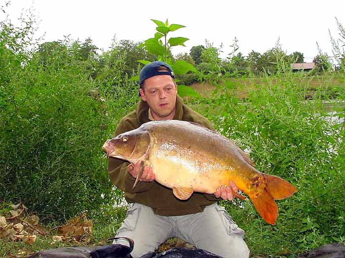Einer von vielen gefangenen Karpfen mit Feeder Lead Methode. Diese Methode hat sich bei nidriger Wassertemperatur als sehr erfolgreich bewiesen. |