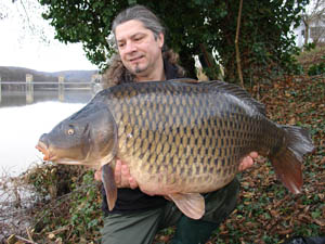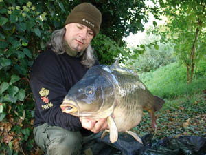 Nur keine Angst vor großen Ködern. Für ein 20+ Karpfen sind sogar 2 Big Balls am Haar ein ganz normalle Beissmenge. Mann soll sich nur vorstellen wie groß die Krebse oder Teichmuscheln sind und wirn uns gleich klar dass der Karpfen in bestimmte Sitautionen sehr, sehr große Leckerbisse bevorzügt was dieser Fang (einer von vielen) bestätigt. Das ist daselbe Karpfen von oben, nur im Herbst 2008 auf 2 Oriental RR Big Balls gefangen.