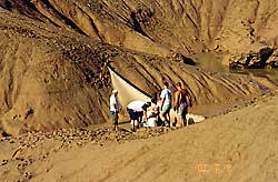 In dieser Zeit besteht die Gefahr, daß wegen zu hohem Wasserstand der Zugang zu den Angelplätzen fast unmöglich ist. Ab Juni fängt dann die regenlose Zeit mit sehr hohen Temperaturen an. Dann fangen die Krater (oder „Sifoni“, wie sie hier genannt werden), die sich am Wassergrund befinden, mit der Arbeit an und verschlucken regelrecht das Wasser und den Fisch. In der Zeit, wo der Wasserstand so schnell fällt, zeigt sich die erste freie Wassergrundfläche und die Angler aus den Angelvereinen, denen der See gehört treten auf die Szene. Organisiert und mit großen Netzen versuchen sie möglichst viele Fische zu retten. Aus fast ausgetrockneten Kratern werden die Fische in den wasserreichen Seeteil umgesetzt.